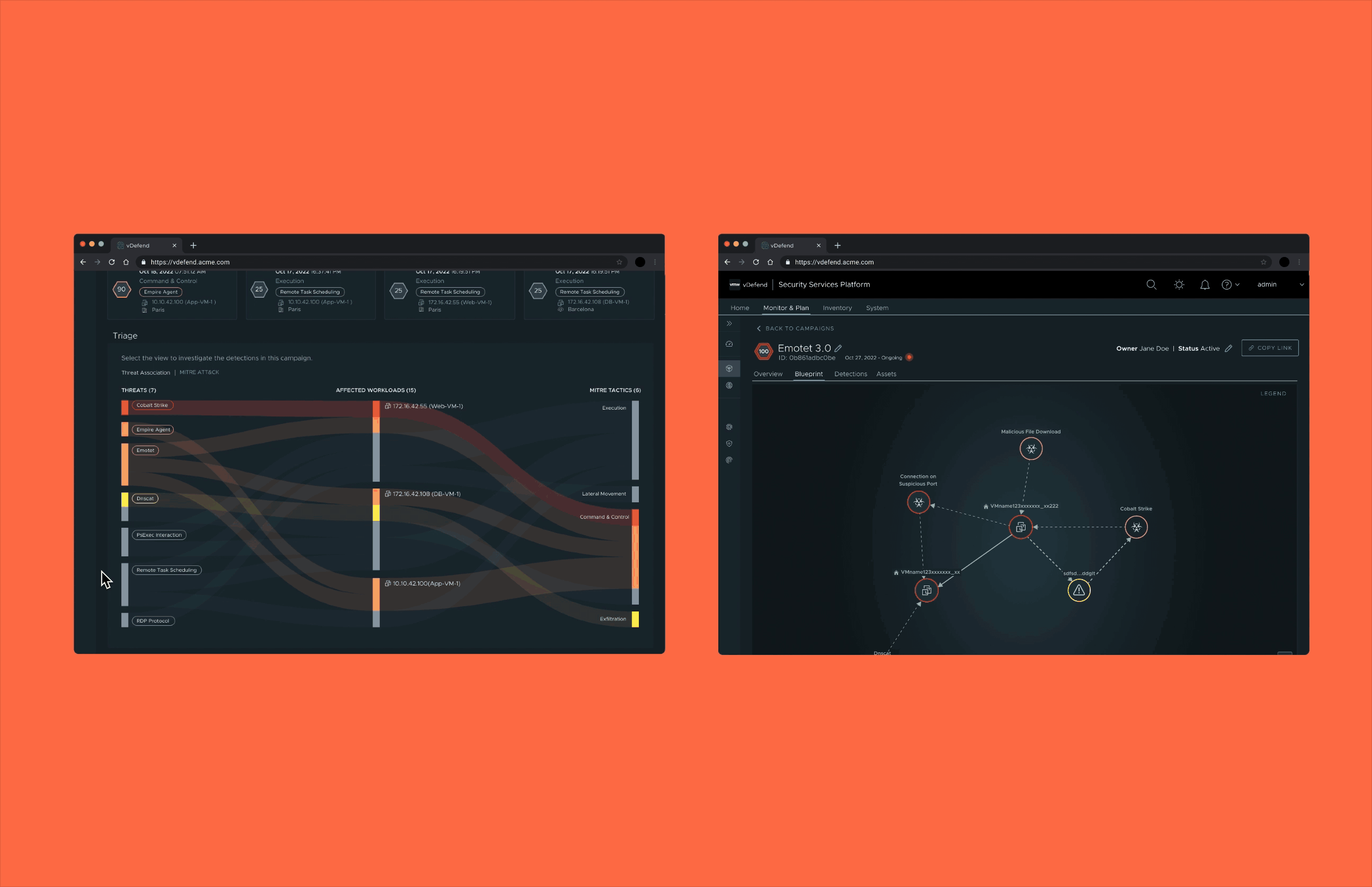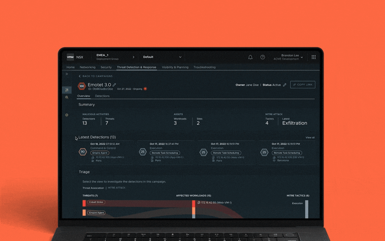 From a standalone product to an integrated feature within the existing VMware NSX, I led the complete design of a new interactive campaign visualization that unified threats, workloads, and attack stages into a single investigation experience — reducing friction and accelerating decision-making in high-stakes environments.
