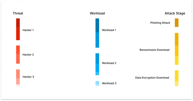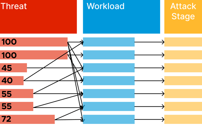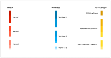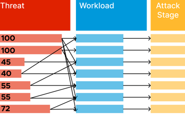 a threat, an affected workload, and a stage in the attack chain.